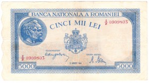 Bancnota 5000 Lei 1944 22 August Vf Cea Mai Rara Data Din Serie Okazii Ro