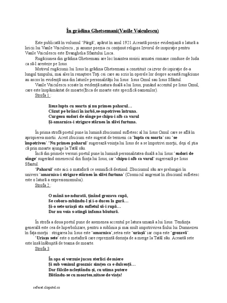 Referat Vasile Voiculescu In Gradina Ghetsemanii 330933 Graduo