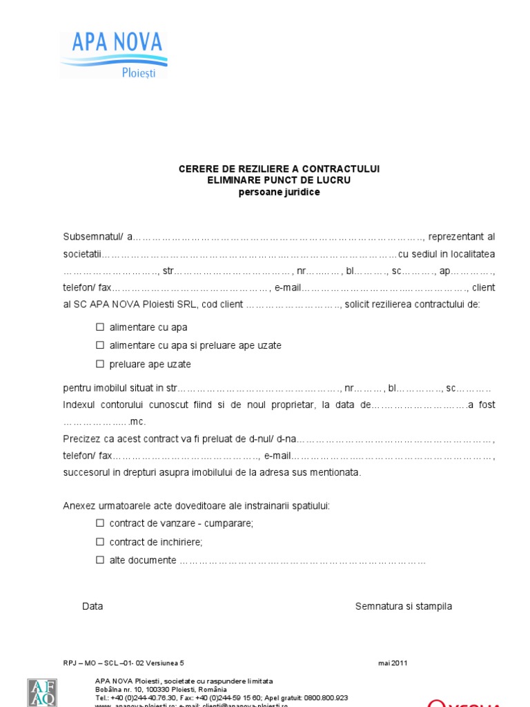 Model Cerere Reziliere Contract Persoane Juridice