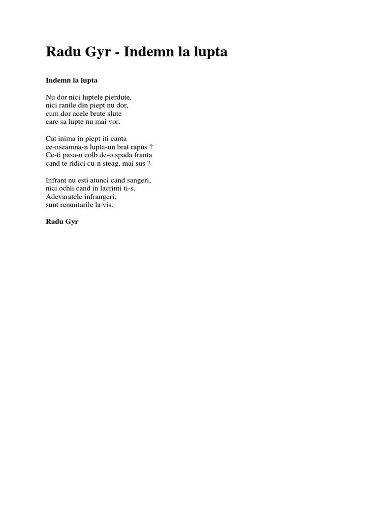 Radu Gyr Indemn La Lupta Nu Dor Nici Poezii Romanesti Facebook