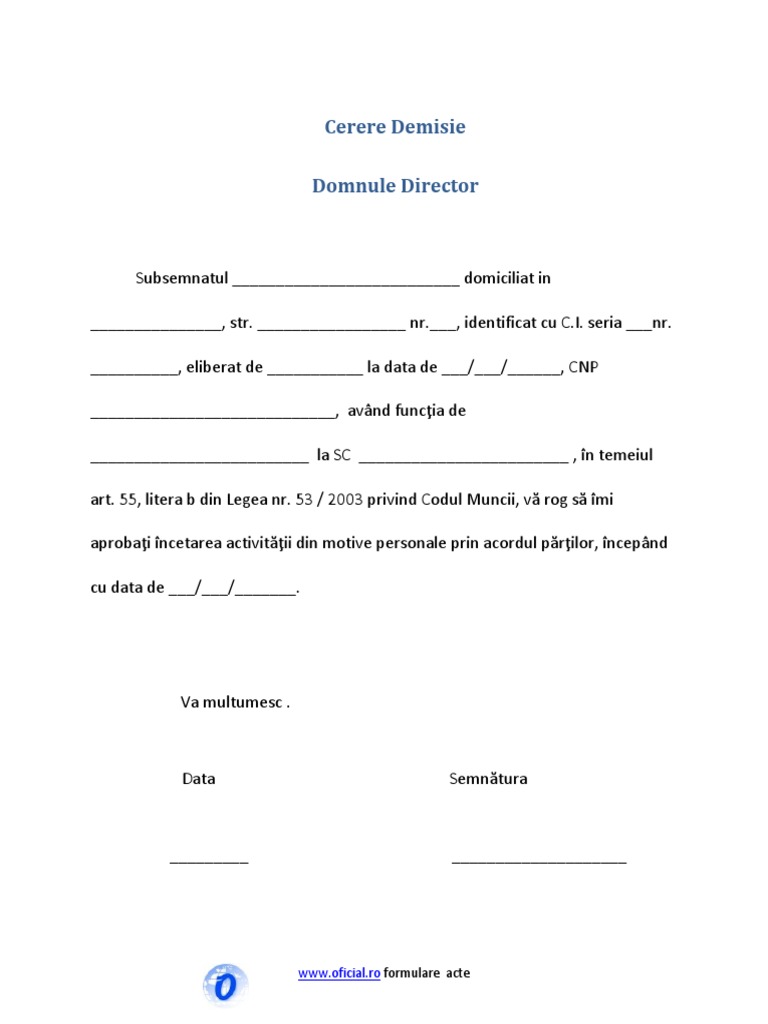 Model De Cerere Demisie Litera 55 B Scribemultiprogram