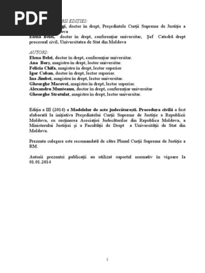 Pdf Modele De Acte Judecătoresti Procedura Civilă Ediţia A Iii A Aleksandr Beryozkin Academia Edu