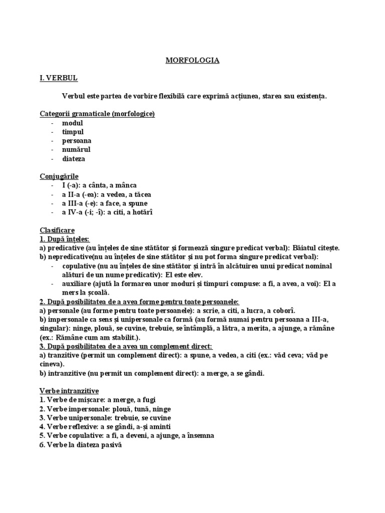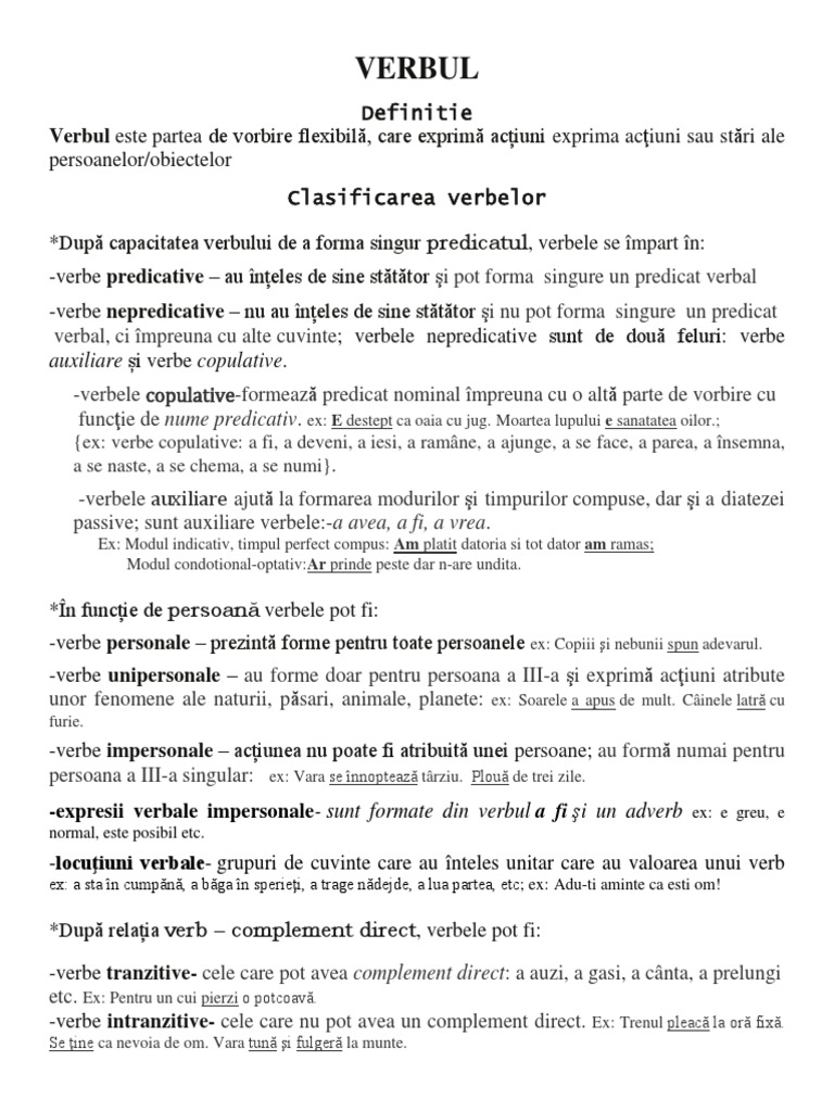 Verbul Verbul Este Partea De Vorbire Flexibilă Care Exprimă Acțiuni