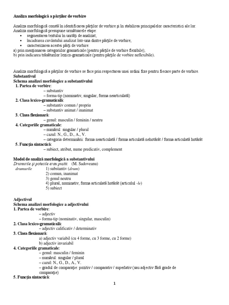 Analiza Morfologică A Părţilor De Vorbire