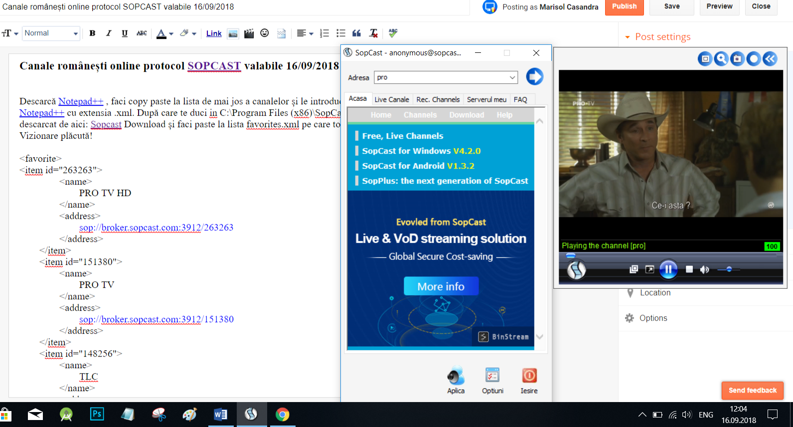 Canale Romanești Online Protocol Sopcast Valabile 16 09 2018 Tv Stream Sopcast To Android Sopcast