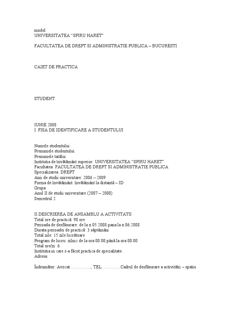 Proiect Caiet Practica Cabinet De Avocatura Drept 316464