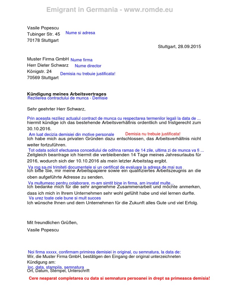Model Cerere De Demisie In Limba Germana Fasrholiday