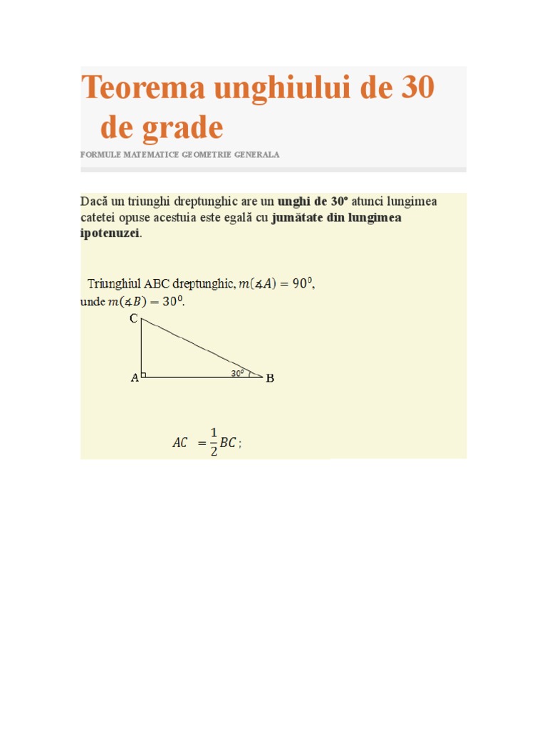 Teorema Unghiului De 30 De Grade